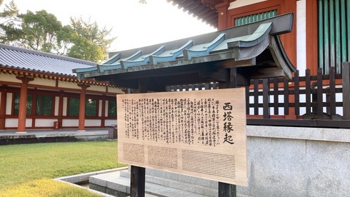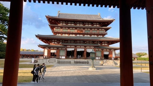 「法隆寺」を視察した後に、古都奈良の文化財の一つとして世界遺産に登録されている薬師寺へ向かった。 奈良時代に「南都七大寺」として、東大寺と法隆寺と並んで朝廷の保護を受けていた。680年、天武天皇が藤原京で創建し、平城京遷都にともなって現在地に造営された。薬師寺の西棟は、奈良時代には現在のように東塔と並ぶ形で建っていたが、戦国時代の享禄元年(1528年)に起きた兵火により焼失。その後長らく再建されずに東塔のみが残されたが、約42年前の昭和56年(1981年)、約450年ぶりに西岡棟梁により再建された。その後、東塔は平成の大改修にて再建された。この大改修の取材は以前のこのサイトで紹介している。