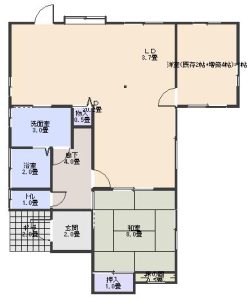 テレビのポジションは、タタミコーナーが無くなることでダイニングのテーブルから一直線に見ることが出来ます。音の面でピアノは新しく増築部屋を音楽用遮音室とすることで、結果的に遮音・高気密・高断熱・自然素材の部屋となりました。